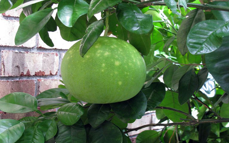 Pink colored flesh. Very low acid; tastes like sweet, mild grapefruit. Dessert or salad fruit; peel used for marmalade or candied dipped in chocolate; Chinese cooking. Fruit: Biscuit shaped with very thick, pudgy, yellow, smooth rind. Tree size: 10 – 50 ft. Cold tolerant.