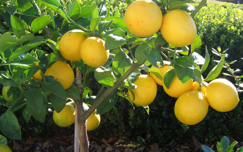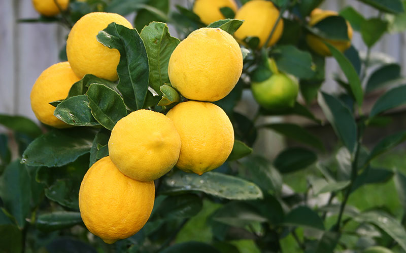 Meyer lemon trees came from China in 1908 and are named after Frank Meyer, the man who brought them to the United States. They are small lemon trees that reach a height of only about 12 feet and a spread about 15 feet. The lemons that Meyer lemon trees produce are less acidic than other lemon tree varieties. Great For Patios.