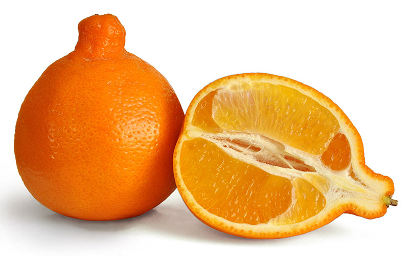 Honeybell citrus trees produce a sweetly tart fruit called a tangelo, a cross between a tangerine and grapefruit. The fruit of the Honeybell has a distinctive neck that gives it a bell shape. Producing fragrant white blooms that attract honeybees.