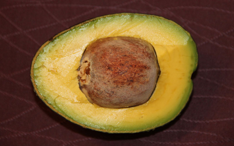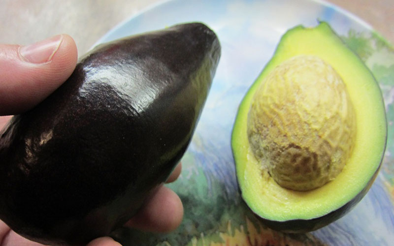 The tree produces nubby, black-skinned fruit prized for its taste and loved by grocers for its long shelf life. It is renowned for is rich nutty flavor and high oil content. A single fruit can weigh over a pound